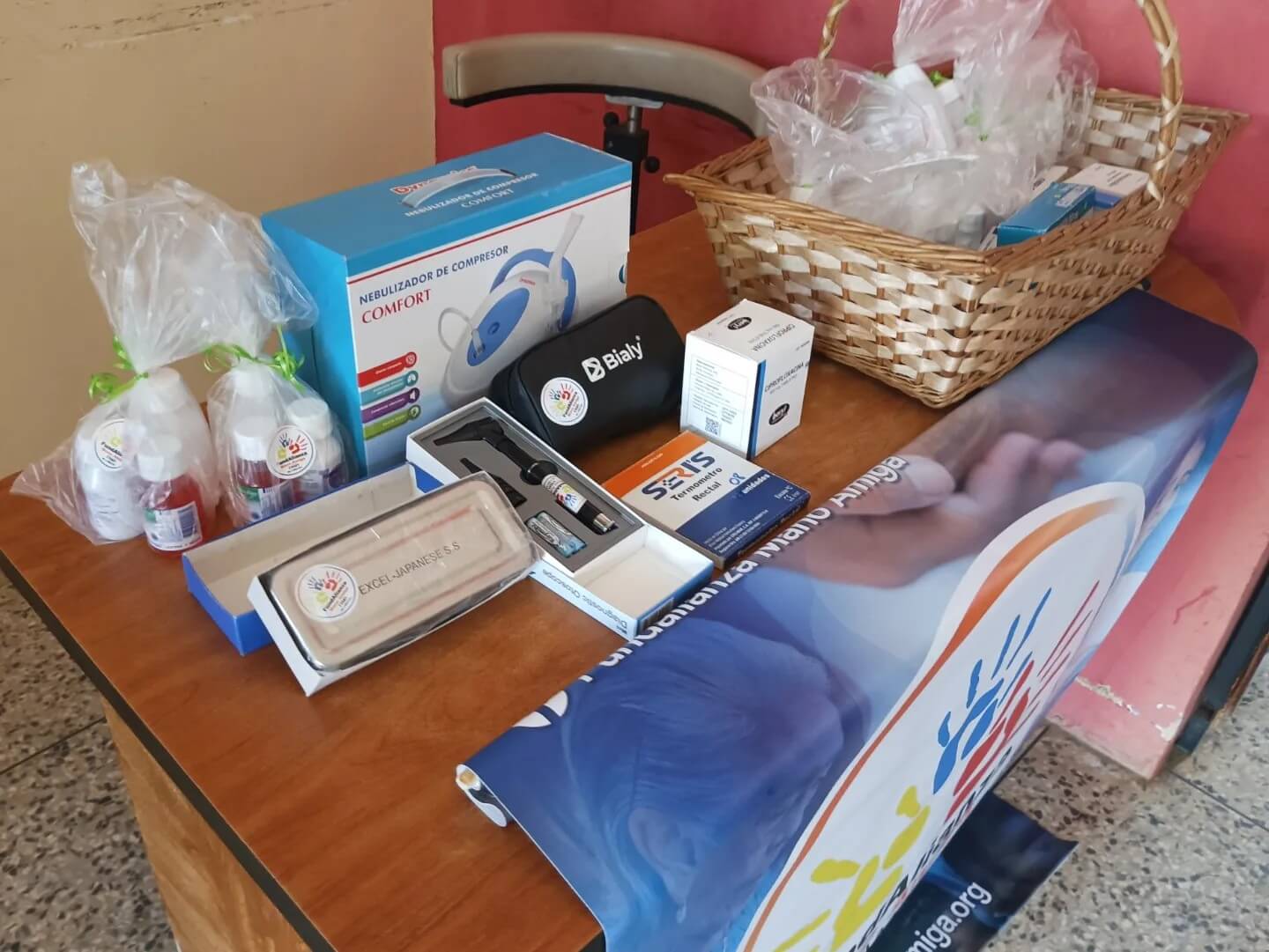 La entrega incluyó tensiómetros, otoscopios, nebulizadores, termómetros, kits de cirugía menor. Asimismo, se donaron cajas de Losartán, Ciprofloxacina, Ibuprofeno, Amoxicilina y Acetaminofén tanto para uso adulto como pediátrico.