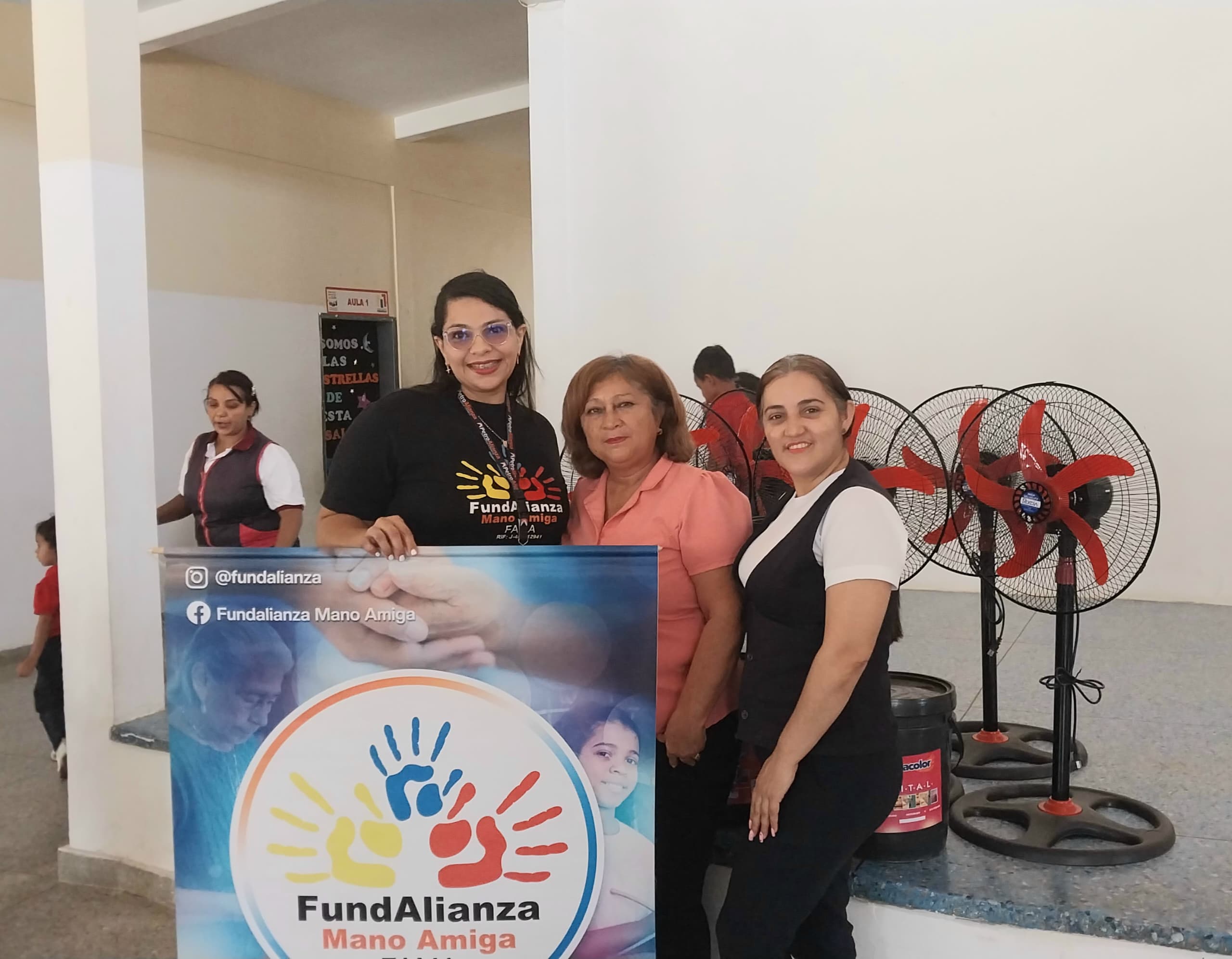 La donación consistió en 3 cuñetes de pintura para embellecer los salones donde imparten las clases y 5 ventiladores para colocar en dichas aulas.